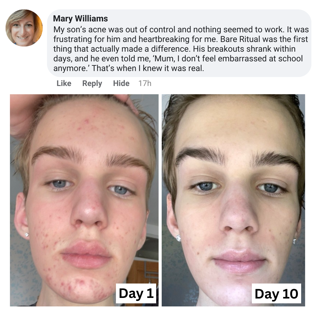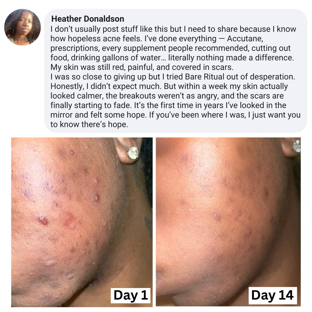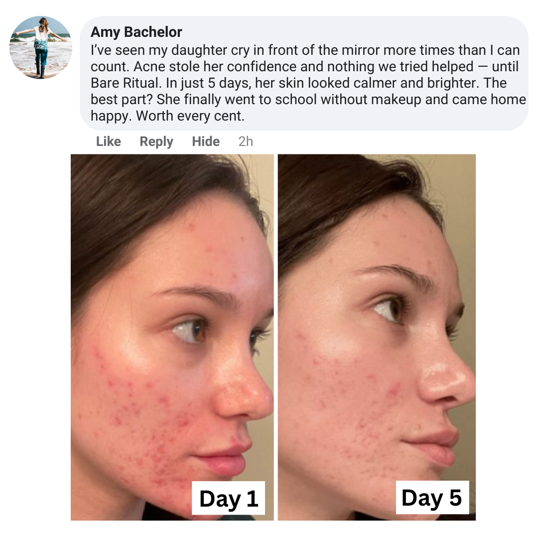 Bare Ritual is gentle yet effective for all skin types — oily, dry, sensitive, or combination. Our botanical formula calms redness and breakouts without harsh chemicals, so everyone can enjoy clearer, healthier skin.